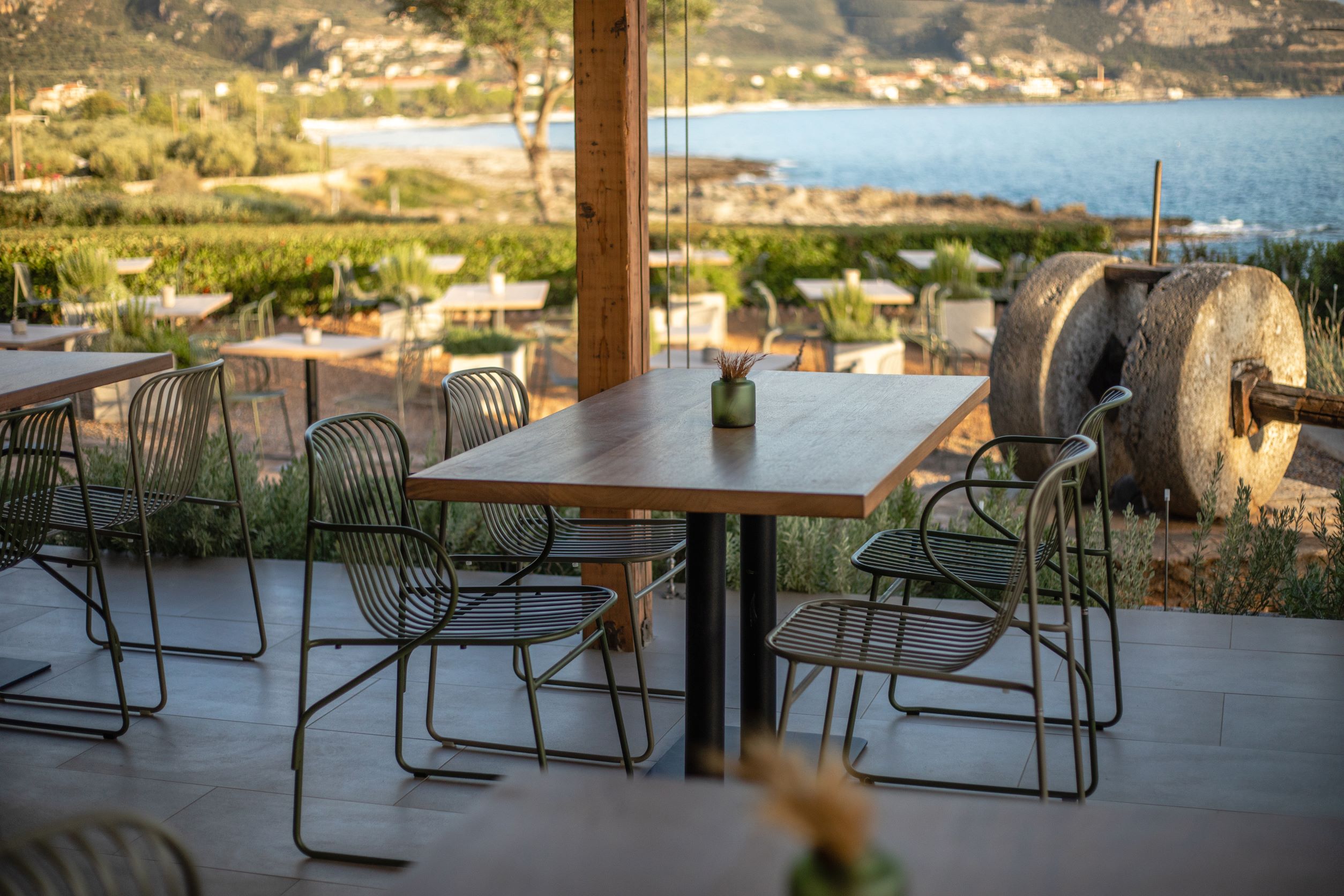 Unwind over one of Mili’s signature cocktails and delicious premium drinks in the lush garden near the beach and enjoy the panoramic sea view, while the children play safely in the hotel’s enclosed playground. In complete harmony with the natural environment of Mani, this exclusive Restaurant Bar in Kardamili, Messinia provides breathtaking views and absolute relaxation and comfort. Conveniently located within the hotel complex, Mili Food & Drinks offers quality services during the day or night.